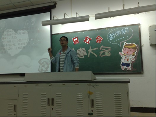 3月7号下午5点,华南农业大学红十字会食品学院分会第5届全体理事大会在食品学院院楼210举行。参加此次会议的有食品红会会长团、各部门干部和干事。此次会议是食品红会本学期第一次理事大会,会议分为两个部分,第一部分是各部门派代表上台详细汇报未来这个学期的工作计划,向全体与会人员汇报本部门主要负责的活动和工作,给出了具体的活动策划;第二部分是会长团对这学期的全部工作和活动做全面的计划,并提出注意事项,工作目标和工作要求。