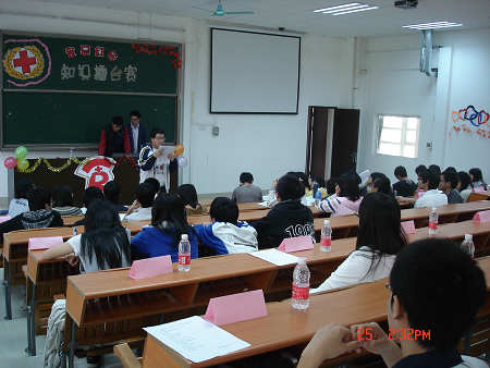 激烈的时刻到来了,11支队伍进行知识比拼,逐步淘汰,剩下最后6支队伍争夺冠、亚、季军。经过了必答题后,让人意外的是,包装工程1班、食品科学与工程2班与另外一支队伍为相同分数,要进入PK环节——抢答。3支队伍时刻警惕着,唯恐落后。最终,包装工程1班和食品科学与工程2班脱颖而出,成为终极比赛的参赛队伍。接下来的环节更是让观众扣紧心弦。决赛分为“金睛火眼”、“指手画脚”、“争先恐后”三个环节。让选手观看食品红会干事自拍的视频,挑出其中错误,考验参赛者对医疗知识的了解程度。还有手语、猜词环节,增添了比赛趣味性。最后的抢答环节延续了刚才的紧张气氛。一轮激烈争霸之后,评为们紧锣密鼓地统计结果,主持人与选手互动,提出有趣的问题,调解比赛的紧张气氛,使整个现场兴致愉悦了。