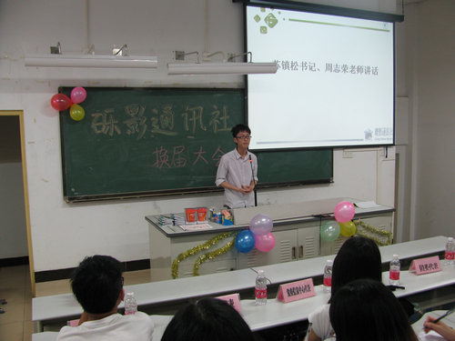 5月16日晚上7:30,我院砾影通讯社在院楼314举行了以“砾影人,我们风雨同心,风雨同行”为主题的换届大会,并邀请了指导老师周志荣,学院兄弟组织代表和砾影通讯社的前辈出席。
