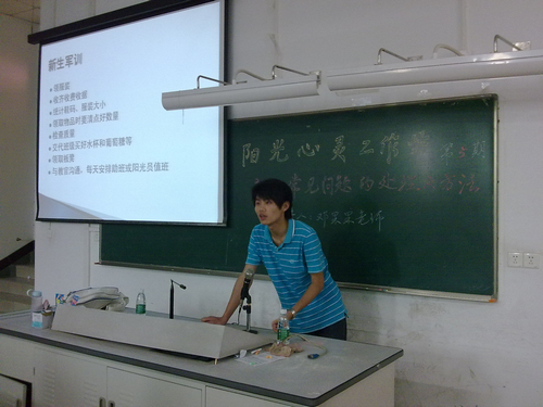 最后,邓果果老师提醒大家,关心留意新生的心理问题也是助班和阳光员的一项重要工作。助班和阳光员要引导新生解决缺乏奋斗目标,学习不适应,人际关系方面、恋爱及经济困难等各方面的心理问题,特别要关心特殊学生,即单亲家庭、贫困、自卑、外省等等的学生,帮助他们更快更好地适应大学生活。