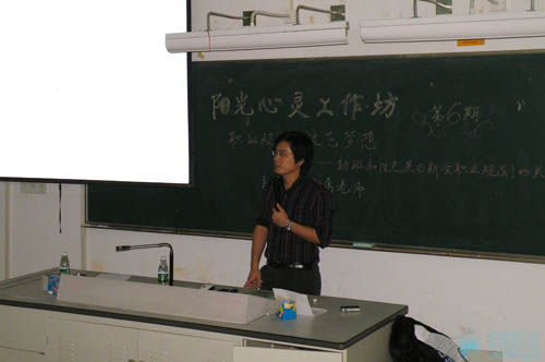 5月23号下午两点半,以“职业规划,放飞梦想”为主题的第六期阳光心灵工作坊在院楼316拉开序幕。我院团委书记鲍金勇老师担任主讲人,为2010届助班和阳光员上了实用的一课。