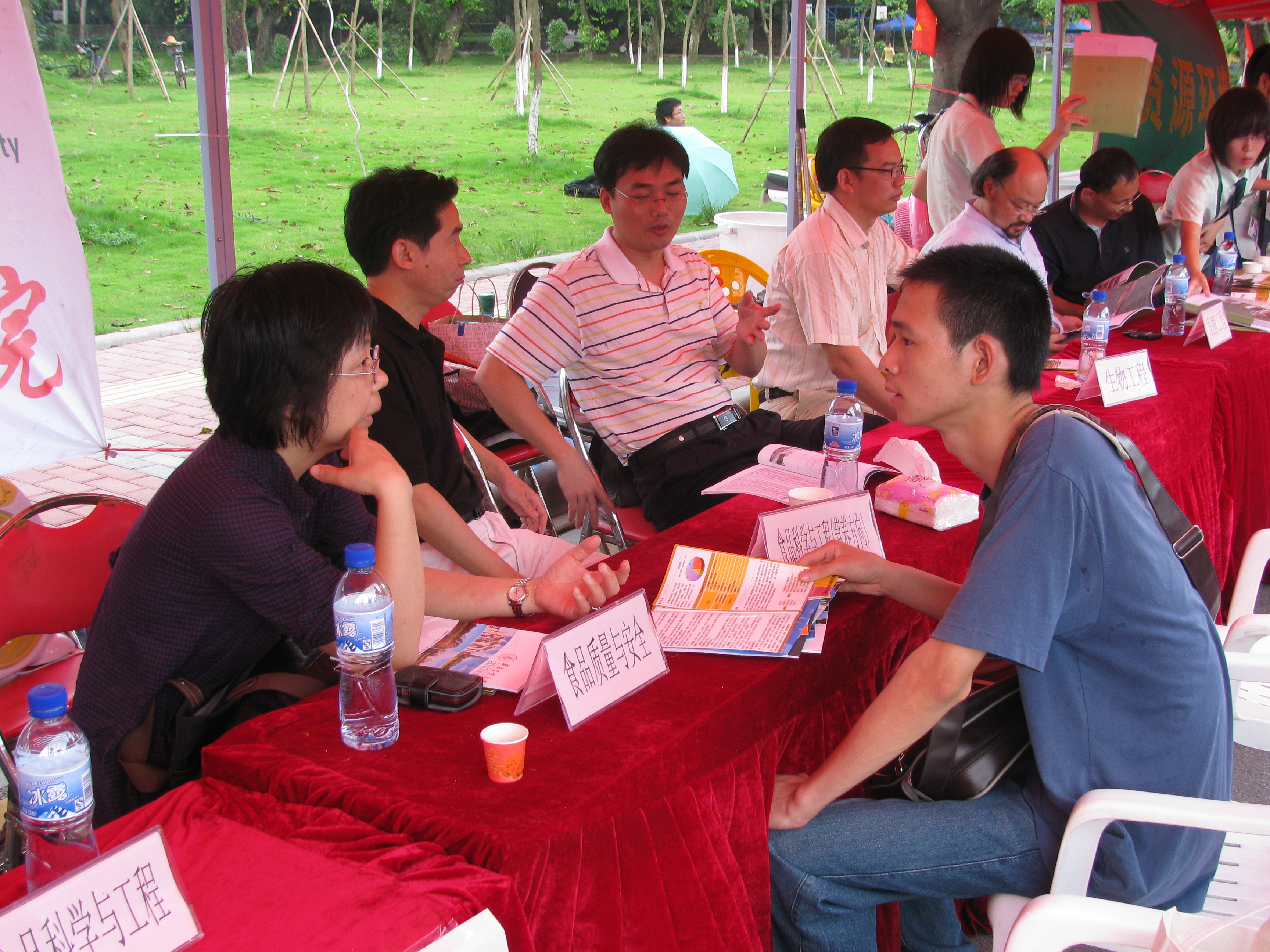 各大学院在行政大楼前设立咨询摊位。各学院各专业的专家教授纷纷坐镇咨询点为考生和家长提供专业学习方面的咨询。另外,他们还给考生和家长免费提供宣传材料以及参观校园和教学设施的机会。