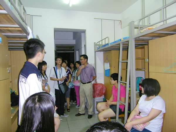 走访时,新生们正在助班和阳光员的带领下开展着生动活泼的班会。有的班级在宿舍里面格外温馨,有的在宿舍的过道上笑脸盈盈,有的在宿舍楼下热闹非凡。领导、老师们均一一走访。走访过程中,领导、老师们询问得最多的便是新生对大学的适应问题。“吃得惯不惯”“有问题就直接跟师兄、师姐或辅导员反映”贴心的话语温暖人心。