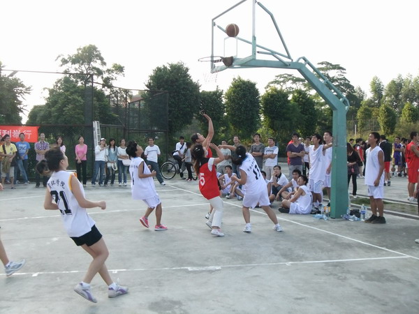 在比赛的中场休息时,两个学院的女生也为我们奉献了一场精彩的“三人篮球赛”。其中,资环学院的4号队员以利落的传球、精准的投篮,赢得了场上的阵阵掌声,还一人拿下场上16分,以大比分获胜。