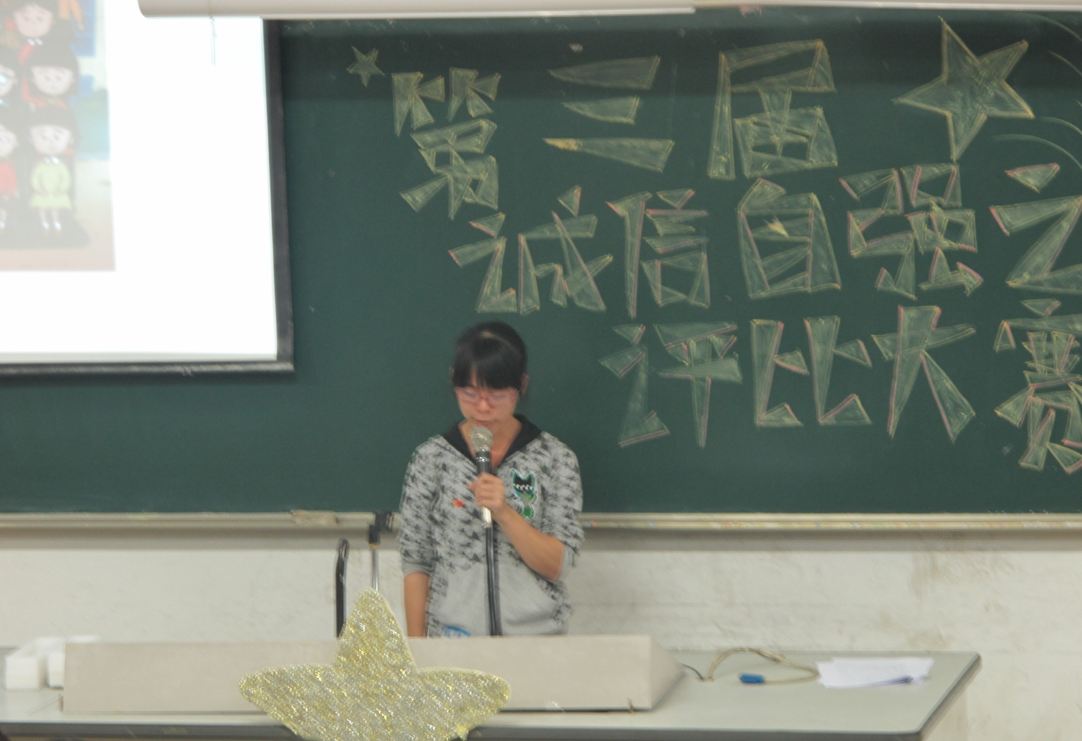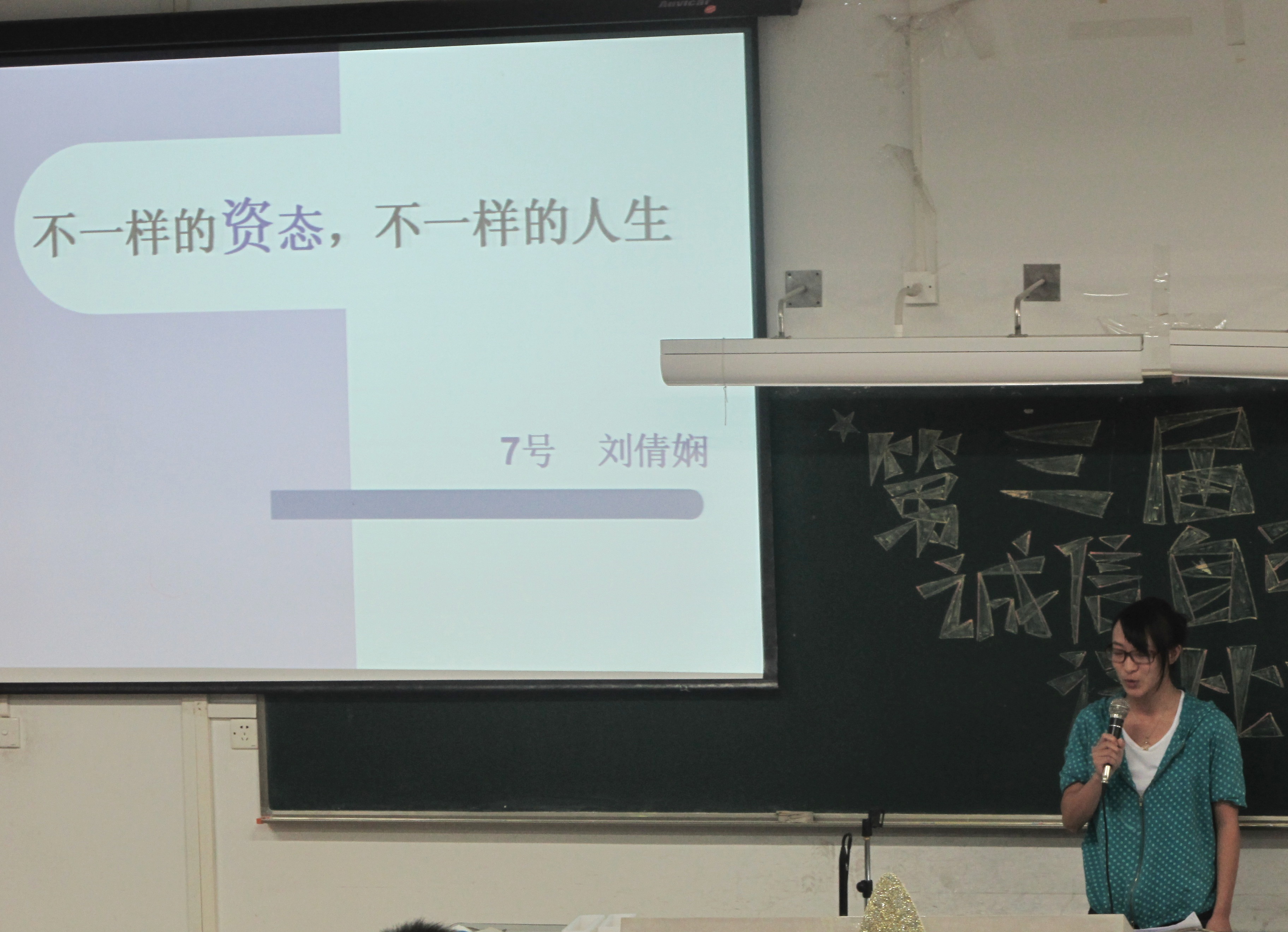 简单的开场后,14名选手依次上台进行7分钟的风采展示。展示内容主要包括自我介绍、座右铭、未来规划等。“天行健,君子以自强不息”、“宝剑锋从磨砺出,梅花香自苦寒来”、“有志者,事竟成”……他们均用实际行动诠释了座右铭的含义。吴小霞个子瘦小,却有着强大的爆发力,过去的两年里,她实现了对自己的允诺:奖学金、部长、义工、志愿者、兼职等等,她从不懈怠,一步一个脚印,踏踏实实地向梦想靠近。