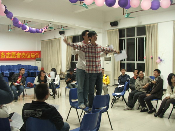 游戏环节妙趣横生,在模仿经典电影桥段《泰坦尼克号》时,我院的狄飞达和黄志强幽默的台词对白,让大家捧腹大笑,也为大家提供了一个很好的锻炼口语的机会。