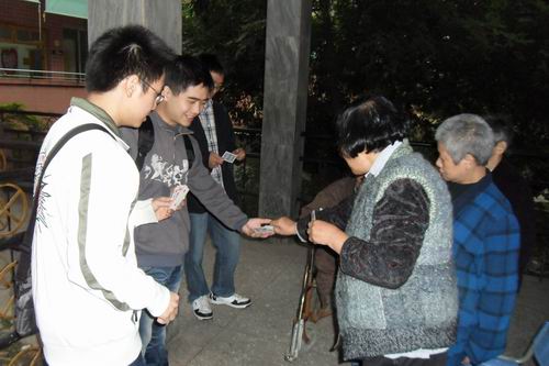 随后,支部党员在书记陈帝仪的安排下与老人们聊天,了解他们的生活,倾听他们的往事,关心他们的感受。还有一些比较活泼的老人家,与党员同志玩起扑克,唱起红歌。支部成员在给老人家们一份关爱的同时,也更多地体会着社会,感受着人生,更有着对国家、对社会主义建设事业的构想。