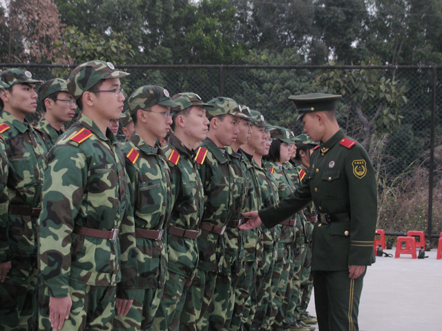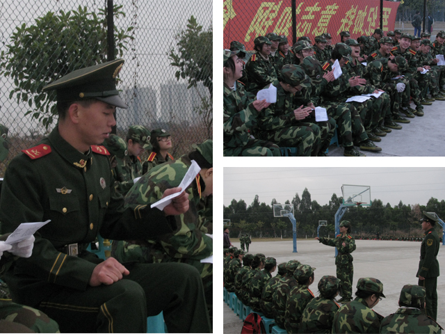 教导员周志荣老师发表总结,赞扬了新兵们精神风貌和良好表现,并公开表扬内务检查的优秀宿舍