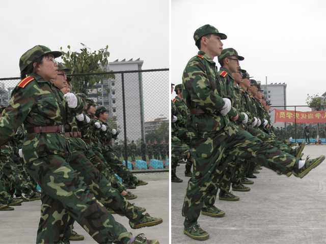 下午,我院新兵们接着训练了正步走,并挑选了部分新兵进行综合格斗术、棍术、刺杀操等军事科目的训练。启林南区训练的各军训营还集中进行了阅兵式的提前演练。(图/陈耀旭 庞淑芬 谢佳纯)