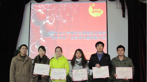 近日,我院研究生团组织以总分第一的成绩被评为校年度研究生团组织及团员“创先争优”活动先进集体。我院坚持实事求是,统筹结合,分类指导,在增强理论知识学习、加强基层组织建设、提高学科专业水平、提高社会服务水平、维护校园稳定和谐五个方面上创先争优,活动成效显著。