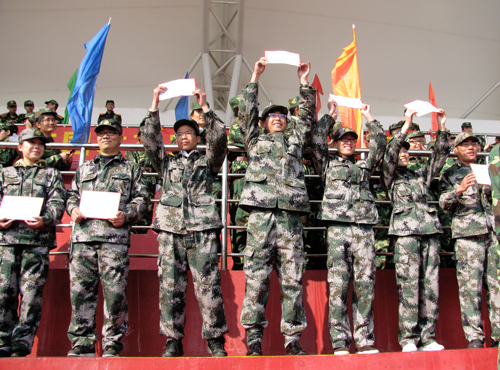 我院在为期12天的军训中,教官们严格要求,领导们关心备至,同学们刻苦训练,获得了“标兵营”、“作风纪律模范营”以及“内务卫生先进营”三项荣誉称号,突破了以往两个奖项的记录,并连续四次获得“标兵营”,2010级辅导员周志荣老师也被评为“优秀教导员”。