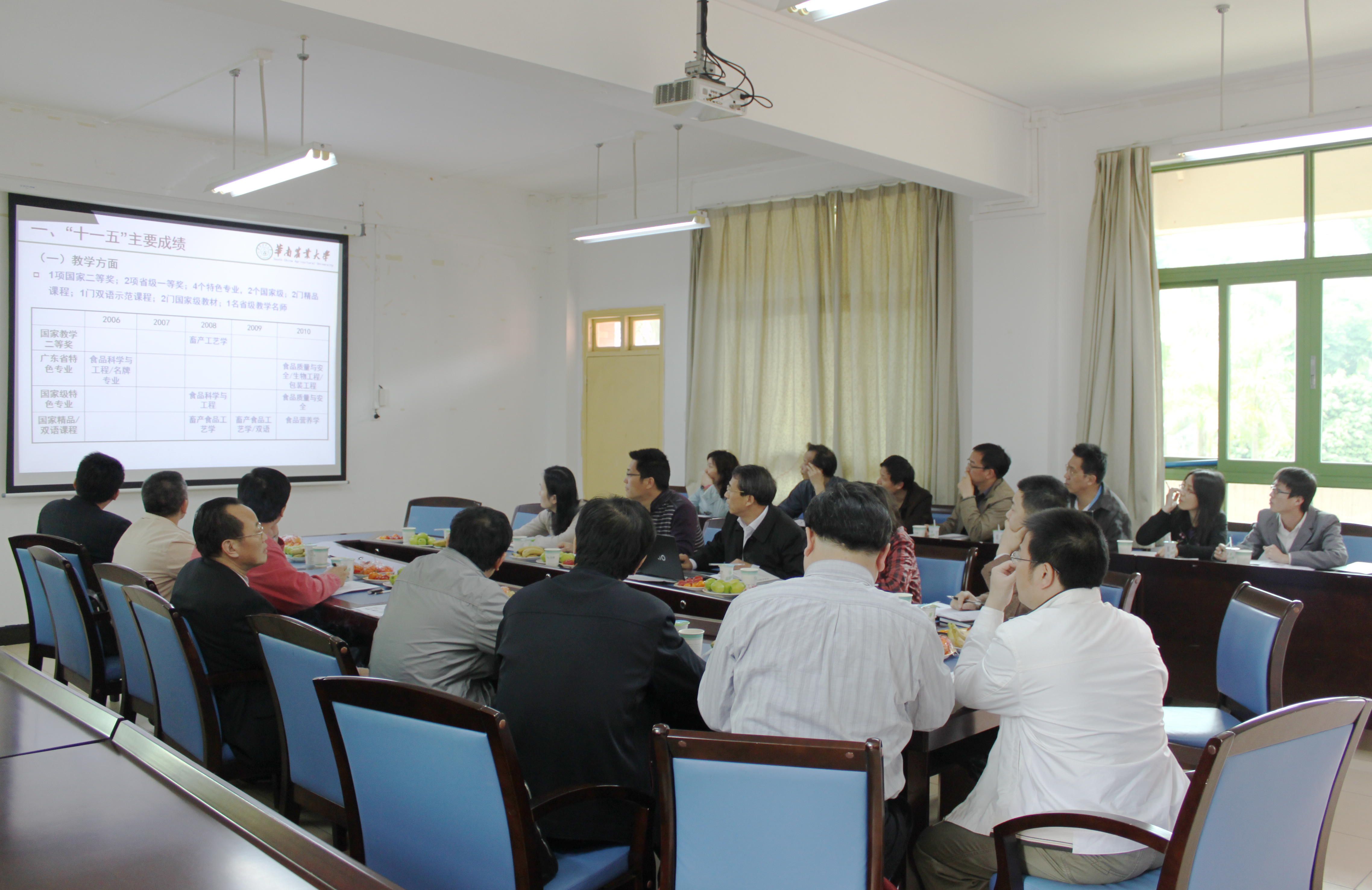 学院院长孙远明向陈晓阳校长一行重点汇报了学院“十一五”期间在教学、科研、教学科研平台建设、学位点建设、人才等方面取得的突出成绩;并分析了目前食品学院发展所面临的机遇与挑战。同时,孙院长对学院的“十二五”发展思路进行了详细的阐述,提出 “抓六化”(教学规范化、科研产业化、学科特色化、学术国际化、创收多元化、管理制度化)的努力方向和“追前十”(综合实力追赶全国前10名的食品类学院/学科)的预期目标,通过坚持科学发展观、进一步凝练学科方向、注重顶层设计、凝聚团队力量、加大力度培养和引进领军人才等措施保障“十二五”发展目标的顺利实现。另外,孙院长还客观地向陈校长一行详细说明了目前食品学院在教学科研办公用房、院楼装修、教学仪器设备、团队建设、创收途径以及实验室管理等方面存在的困难和需要学校解决的问题。学院党委书记李国章、副院长库夭梅、向红等学院领导对学院“十二五”发展存在的困难和问题做了相应的补充和说明。