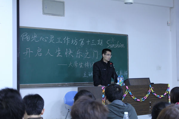 3月16日晚7:30,我院阳光加油站在第五教学楼C栋304主办了第十三期阳光心灵工作坊,本次讲座由校心理辅导中心的曾永辉老师主讲。