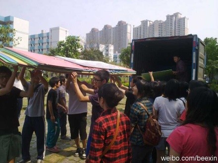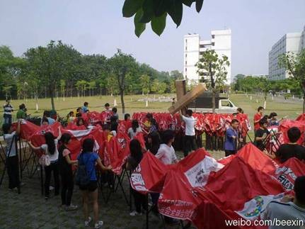 在整个布场过程中,食品学院团委学生会的同学们发扬了食品人不怕苦不怕累的精神,用努力和汗水,为五山大草坪的布场贡献出属于自己的一份力量,同时为第十一届美食文化节的成功举办做好了充分的准备。