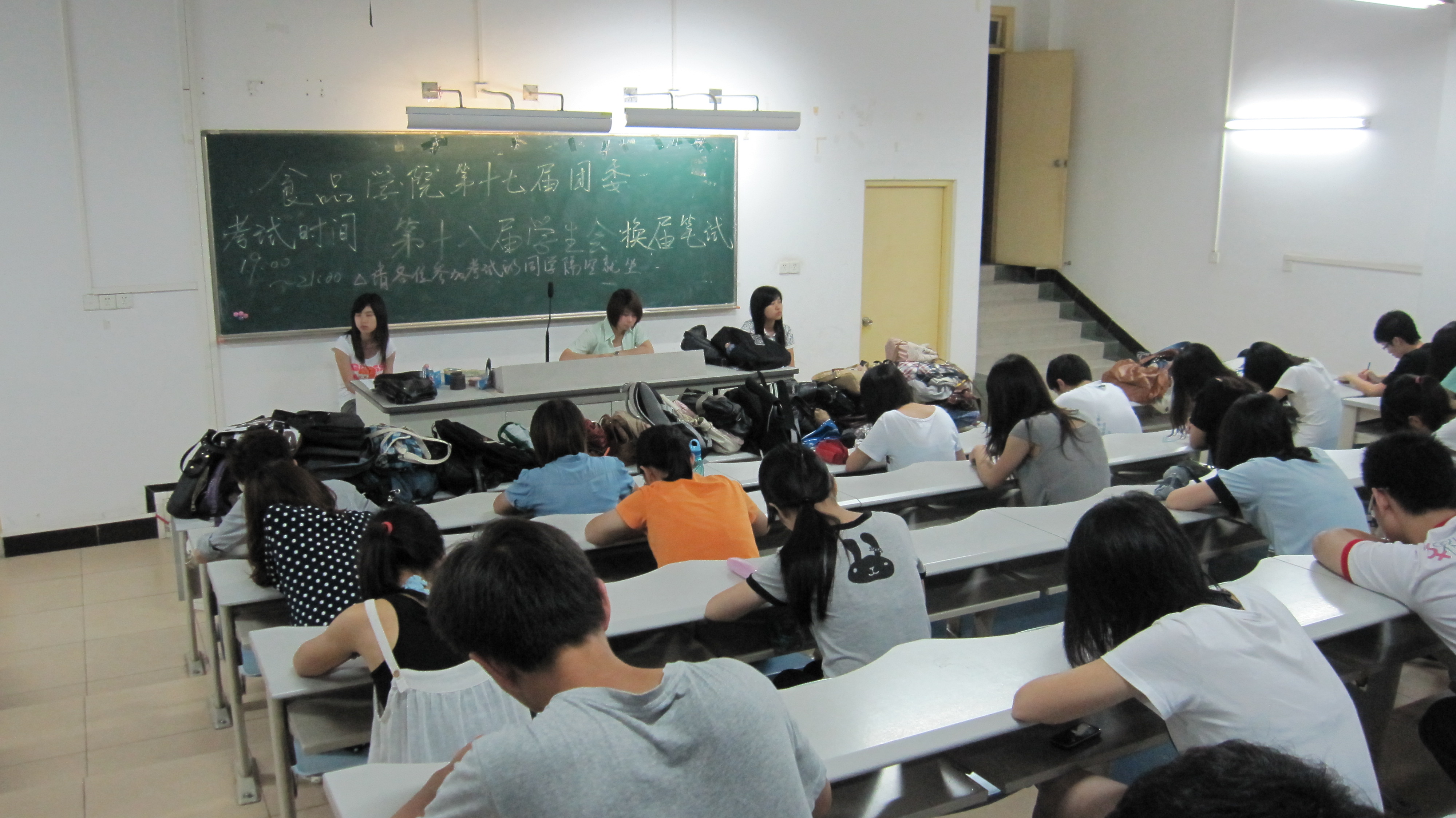 月15日晚上7点,食品学院第十七届团委、第十八届学生会换届工作拉开了序幕,第一轮考核——换届笔试在院楼516举行。
