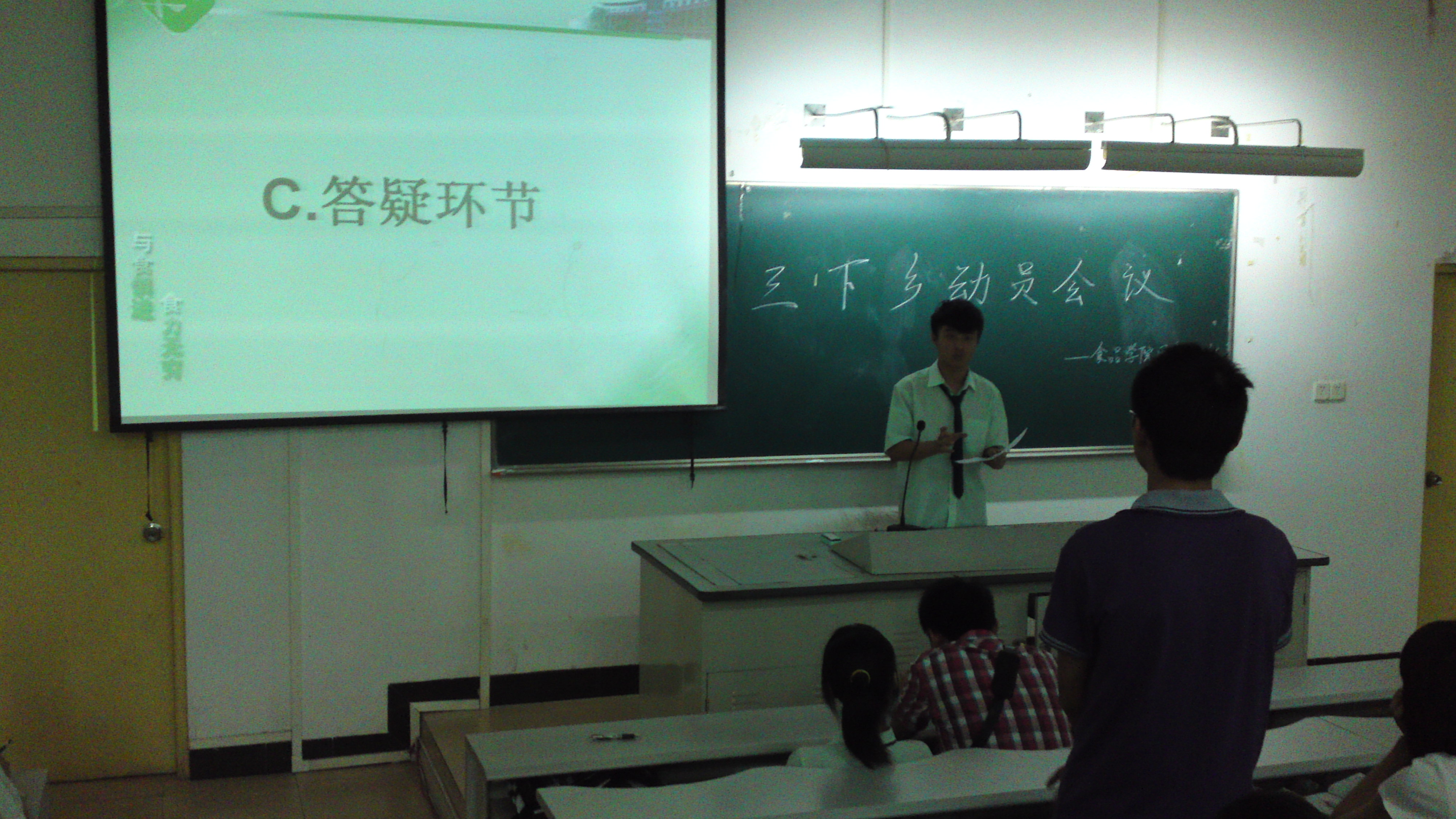 接着,由实践部副部长李迪为各支队伍作了“三下乡”相关活动及工作介绍。最后由实践部副部长谢晓航为各支队伍作相关问题的答疑。各支“三下乡”队伍的代表认真参加本次动员会议,并对“三下乡”可能出现的问题真正做到“不懂就问”。