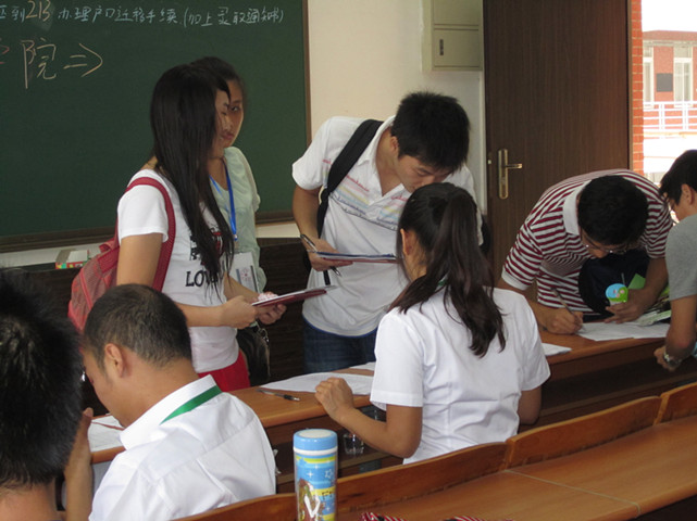 我院研究生迎新工作在燕山区科技楼前和科技楼327教室展开。楼前主要负责新生的接待工作,室内则进行新生报到注册工作。一大早,我院研究生会全体干部、研究生党员小分队和志愿者全部进入工作岗位,以饱满的热情,认真负责的态度积极做好各项迎新工作。