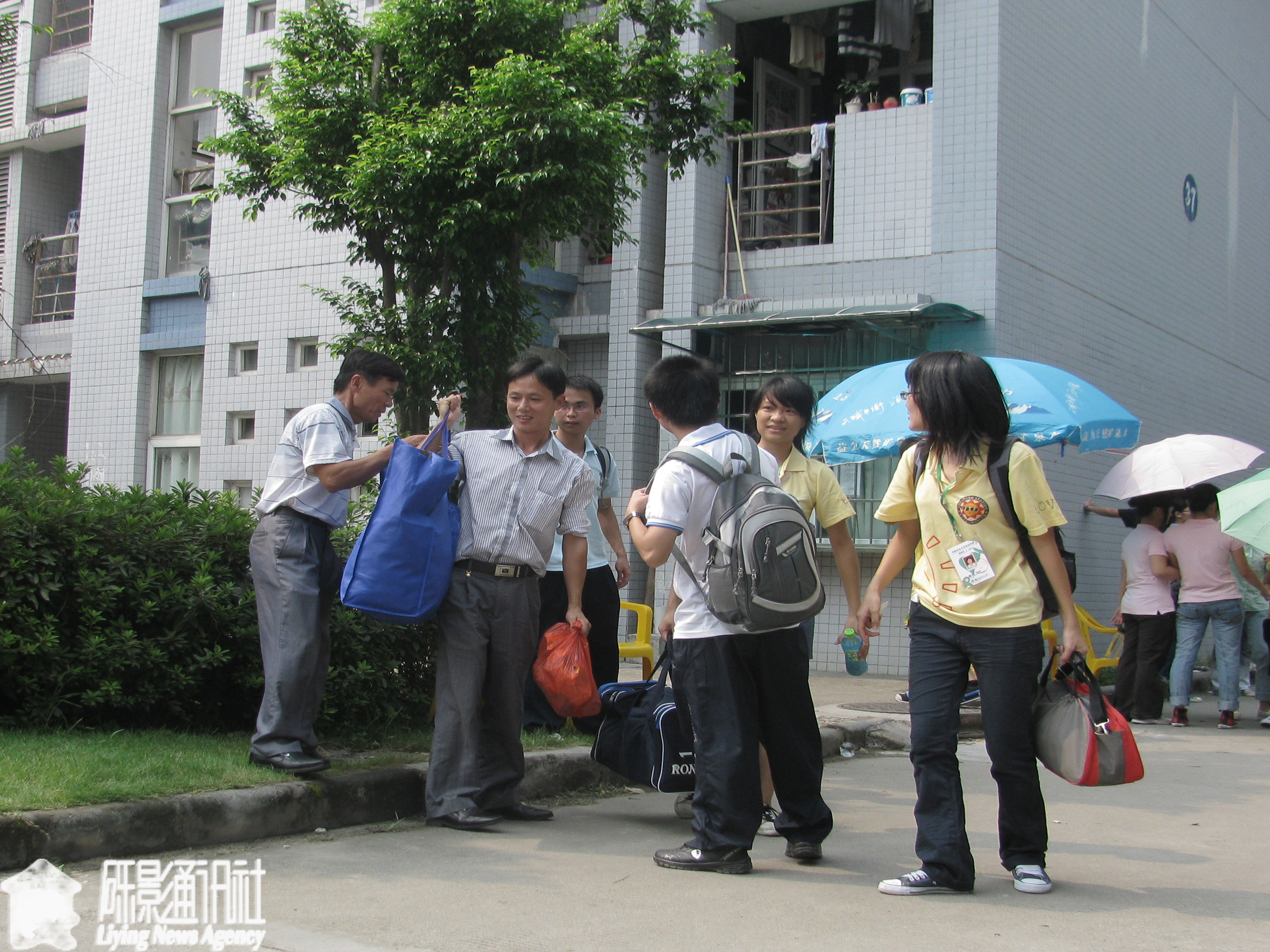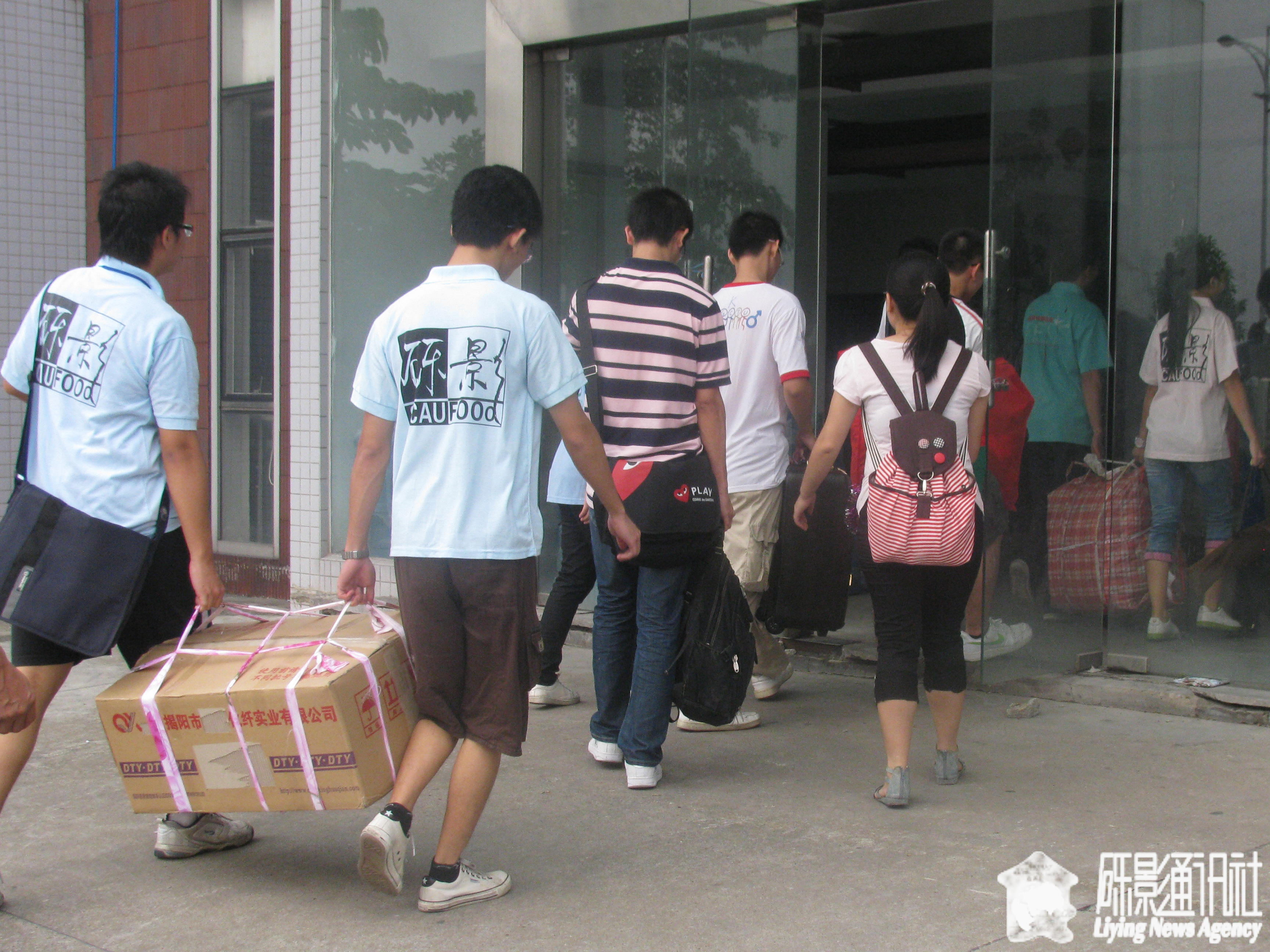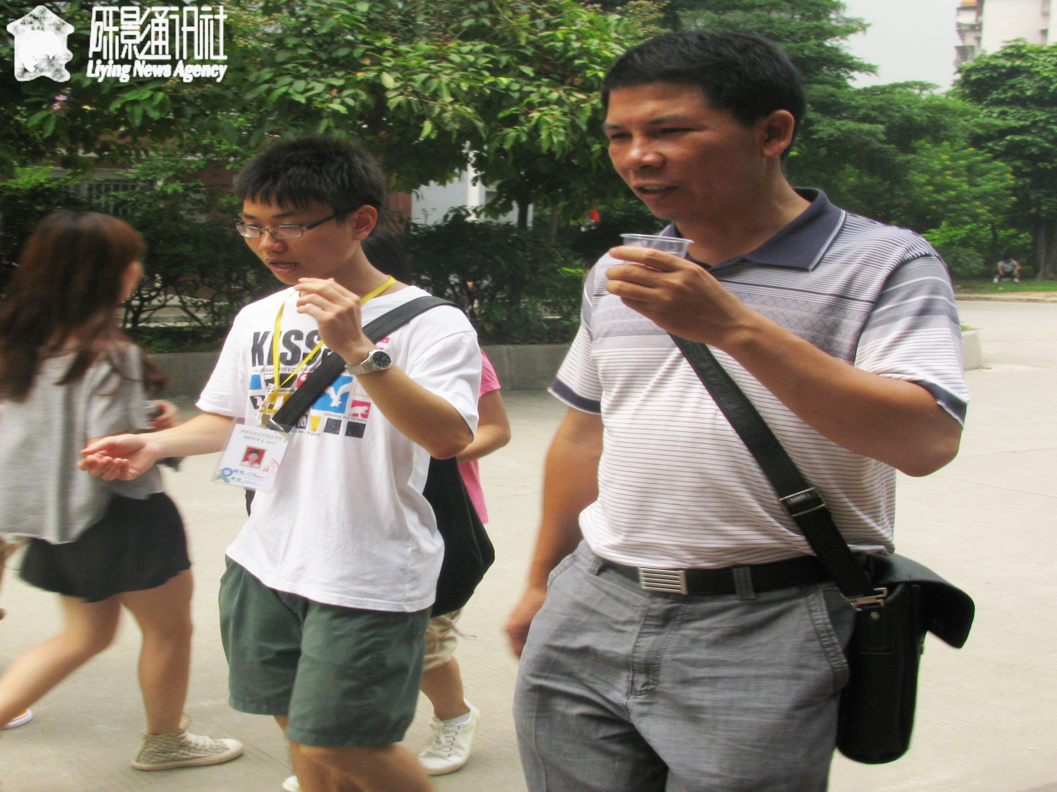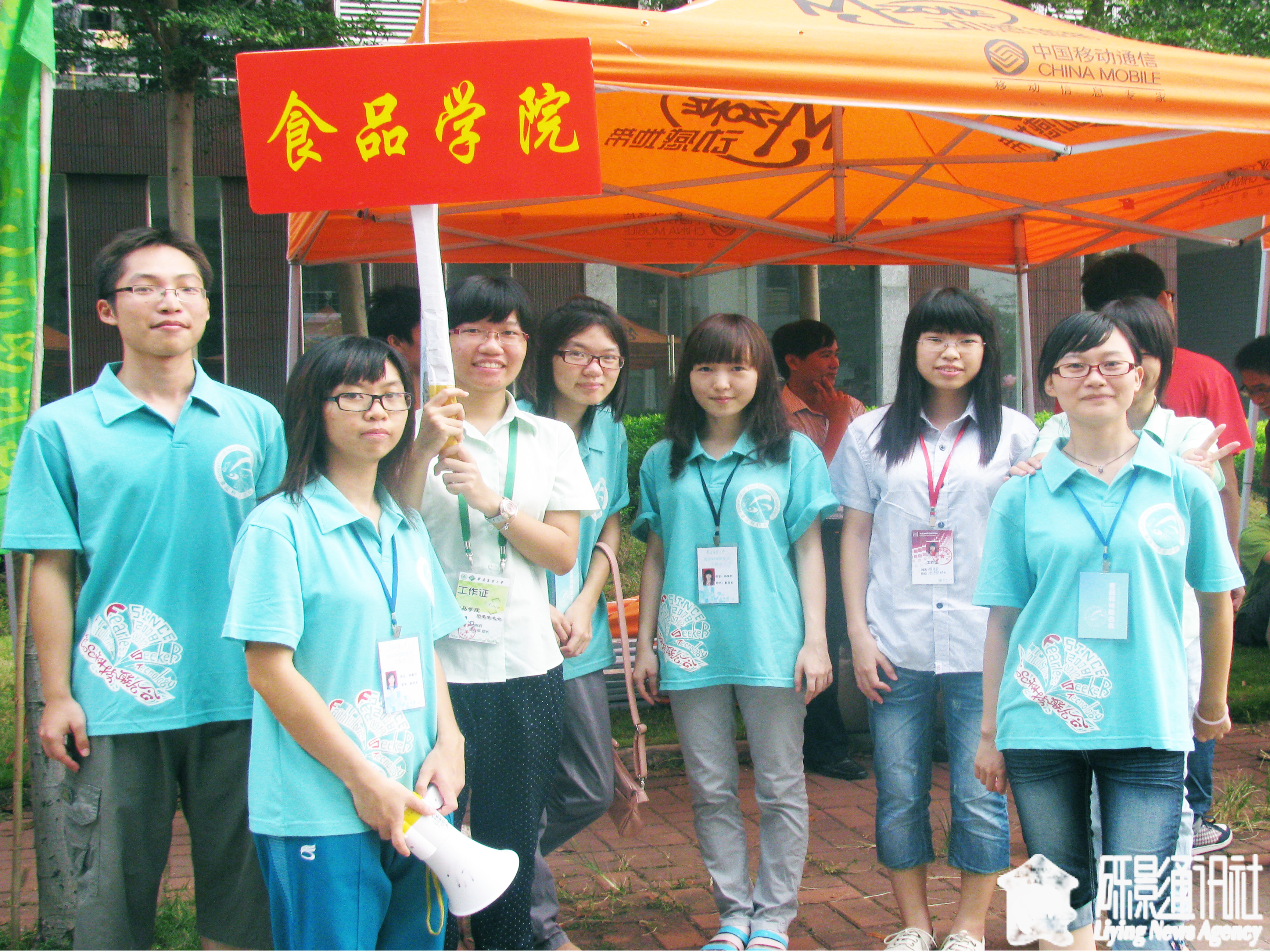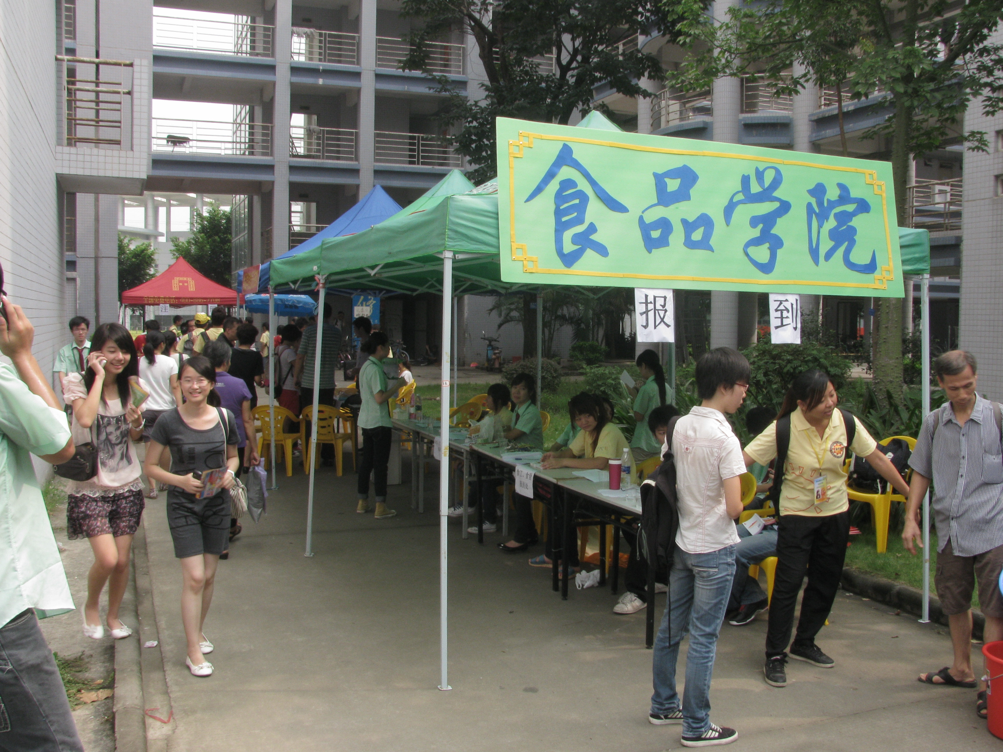 阳光下,高举的院牌,扩音器播不断循环的“食品学院的新生,有木有”。这是我院迎新工作人员在候车点的情景。当校巴一来,工作人员就开始晃动着院牌,示意本学院新生向自己靠拢。“今年在跃进南的注册摊位不多,没有去年抢新生的热闹情景”,一位在荷园站点迎接新生的工作人如是说。