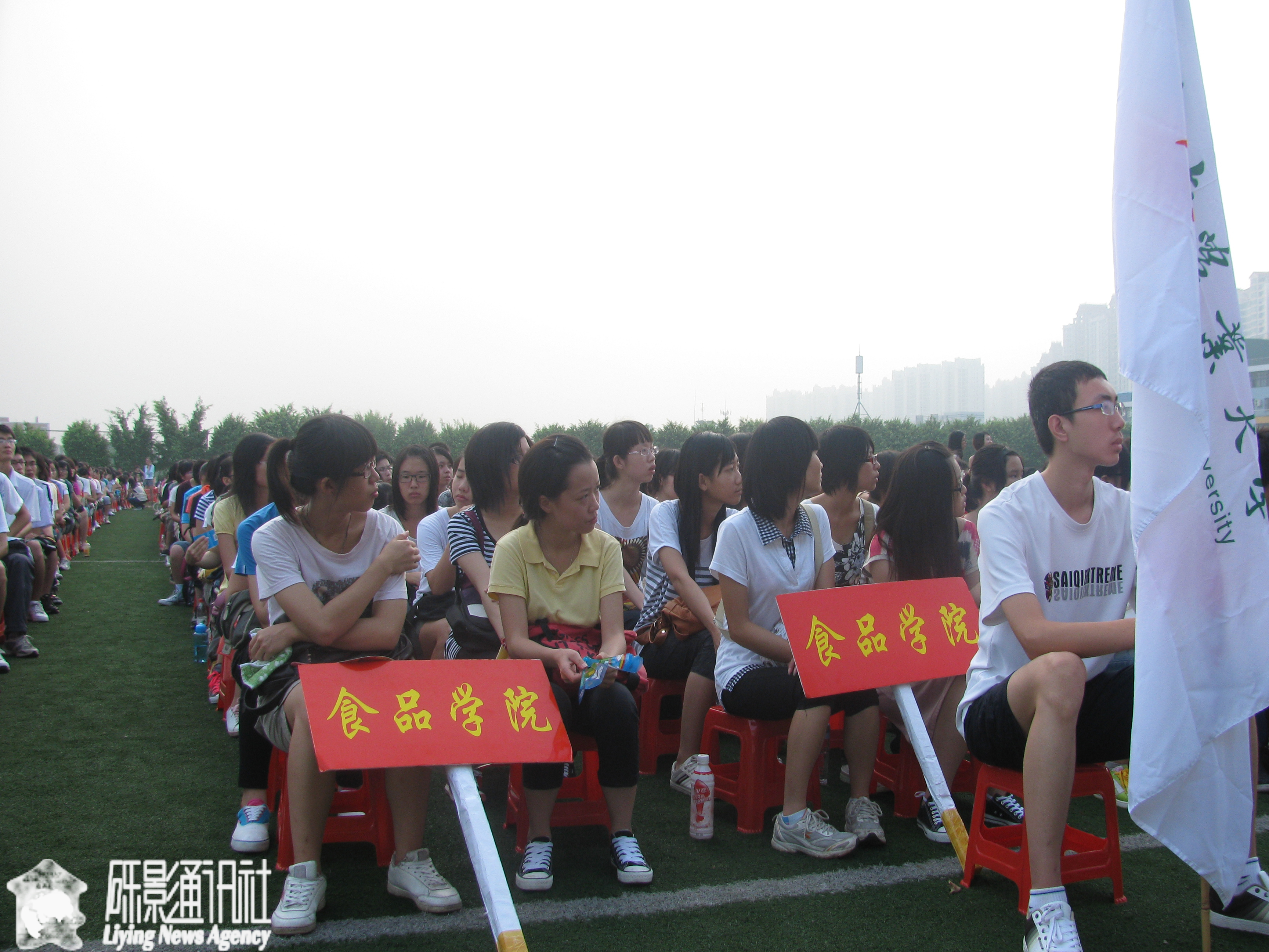 2011年9月6日清晨,食品学院新生在东区运动场,参加了2011级新生全校的开学典礼。出席典礼的嘉宾有校党委书记李大胜教授,校长陈晓阳教授,中国科学院院士卢永根教授,中国工程院院士罗锡文教授等。