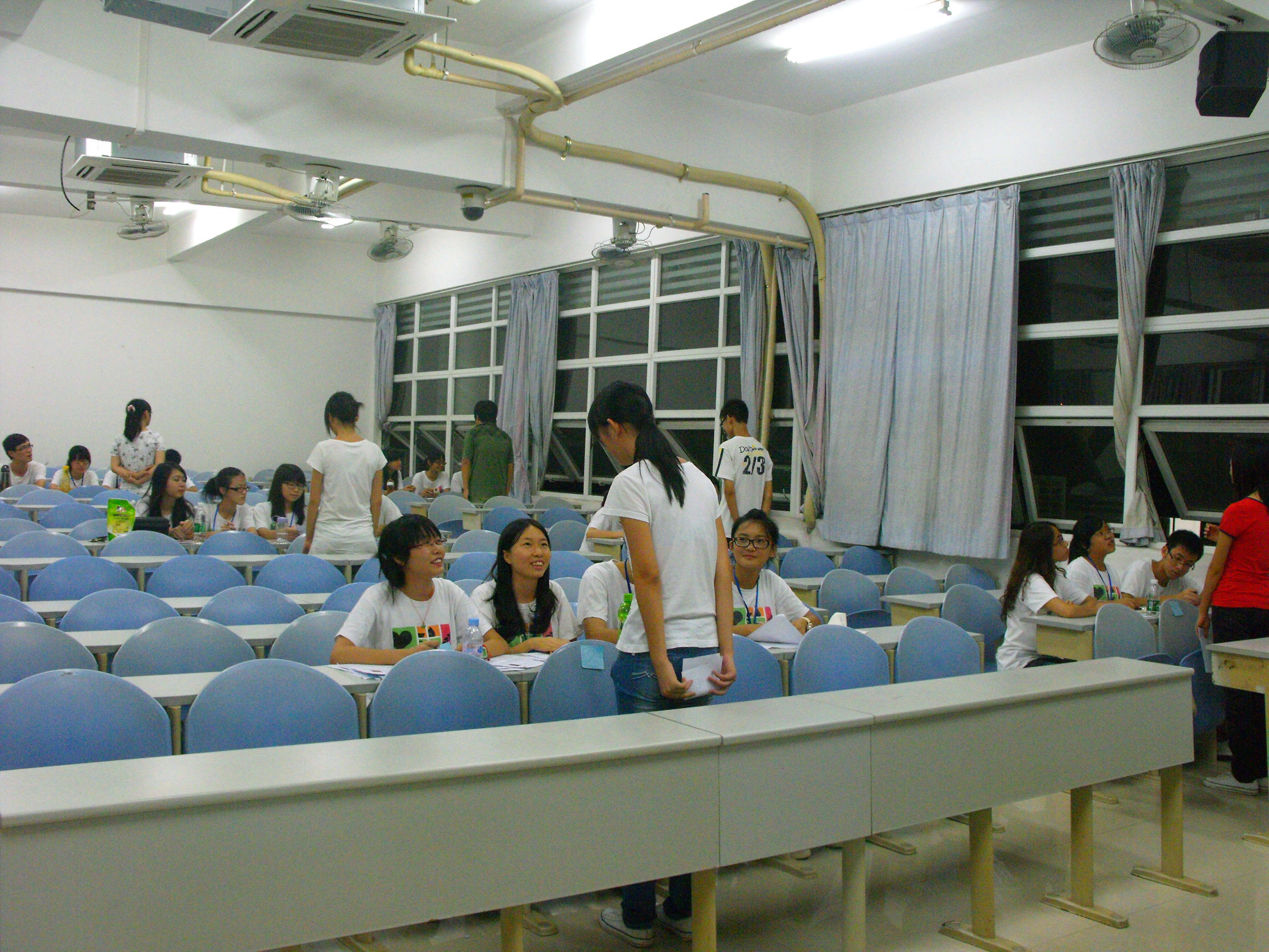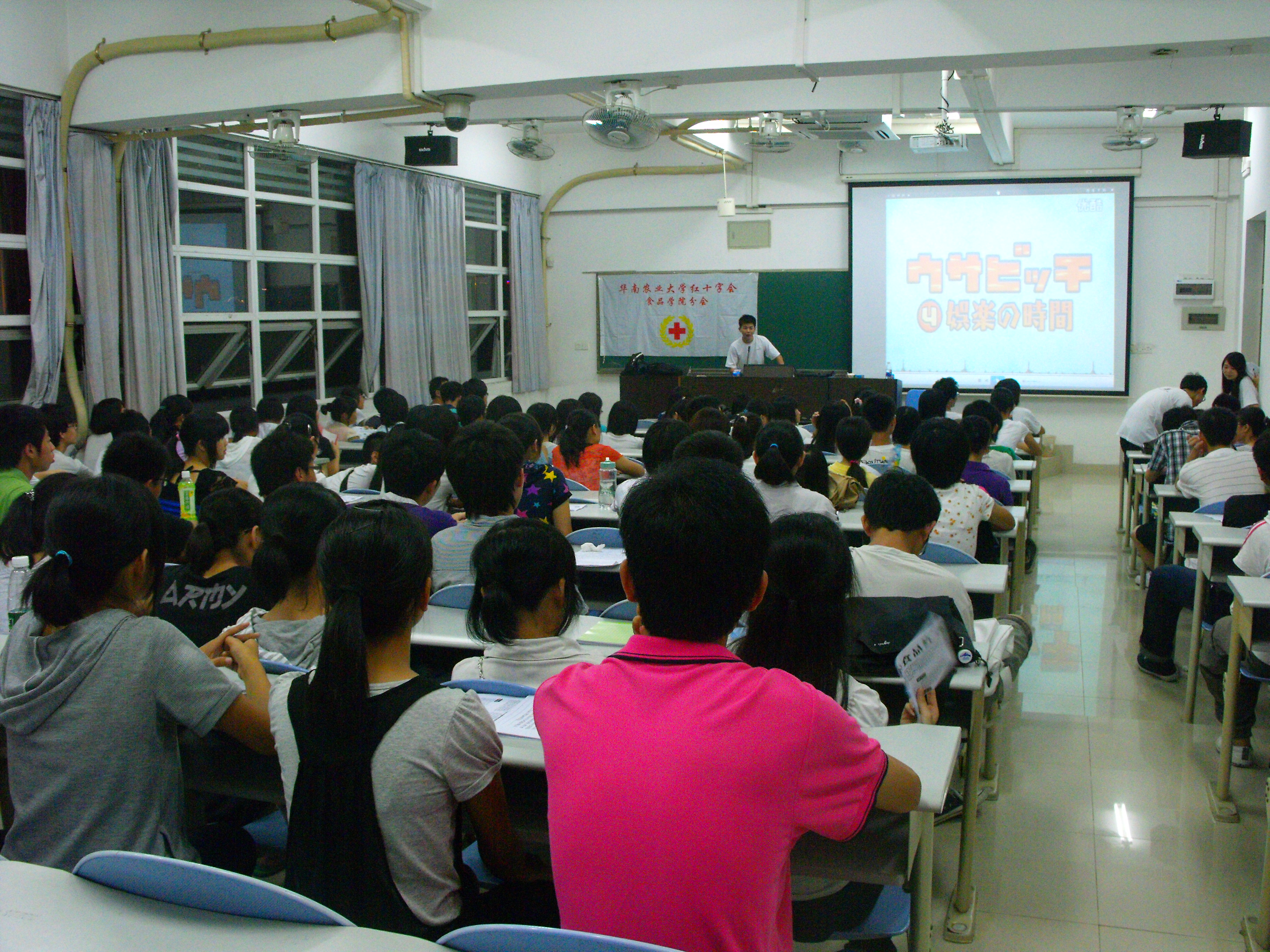面试在晚上7点钟正式开始,还没到正式面试的时间,候等室就已经坐满了等候面试的同学。为了活跃现场的气氛以及放松大家紧张的心情,红会干部首先为大家放映了有关红会的宣传视频,同时很热心地为大家讲解有关问题。在等候室的娱乐时段里,最热闹的就是大家间的互动。很多同学都很积极地上台为大家表演自己的才艺,最多的就是为大家演唱歌曲,现场不断响起热烈的掌声。上一届副会长胡怀宇师兄的深情演唱将全场气氛带到高潮,除此之外许多现任干部也为大家表演了节目,还有几位新生的演说一度把整个场面给hold住,使现场气氛再次到达高潮。