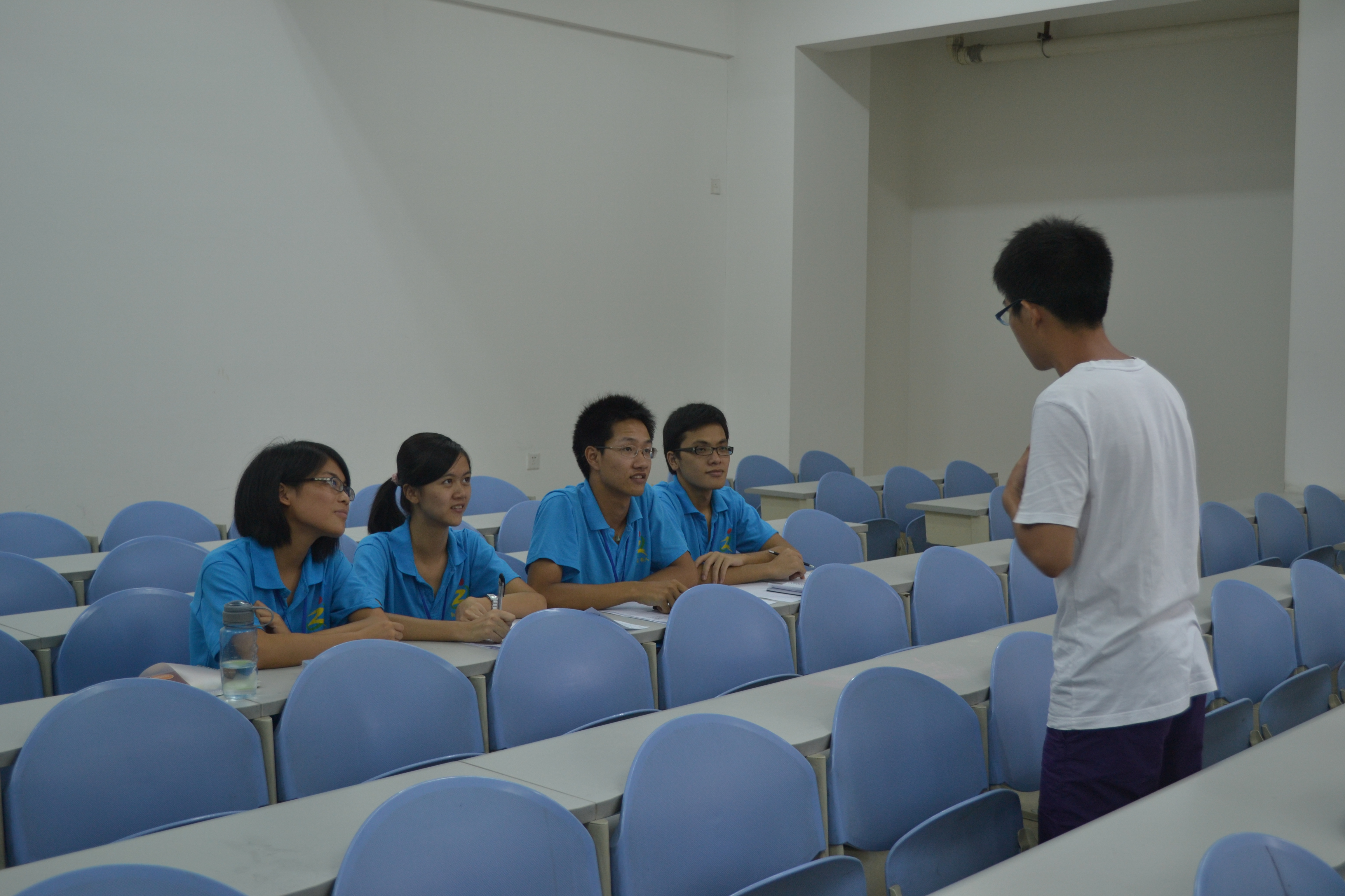 这次面试担当面试官的是自强队的干部。整个面试过程流畅有序,引导人员在面试开始前将面试的同学带到课室进行签到,发放报名表,等待期间为了使新生们能够充分放松,干部们积极地和他们交流。其余干部作为面试官在相邻课室等待着面试者的到来。12点30分,面试正式开始,引导者负责将面试的同学带到各个面试组,并采取一个一个面试的方式,面试者认真的回答面试官提出的问题。