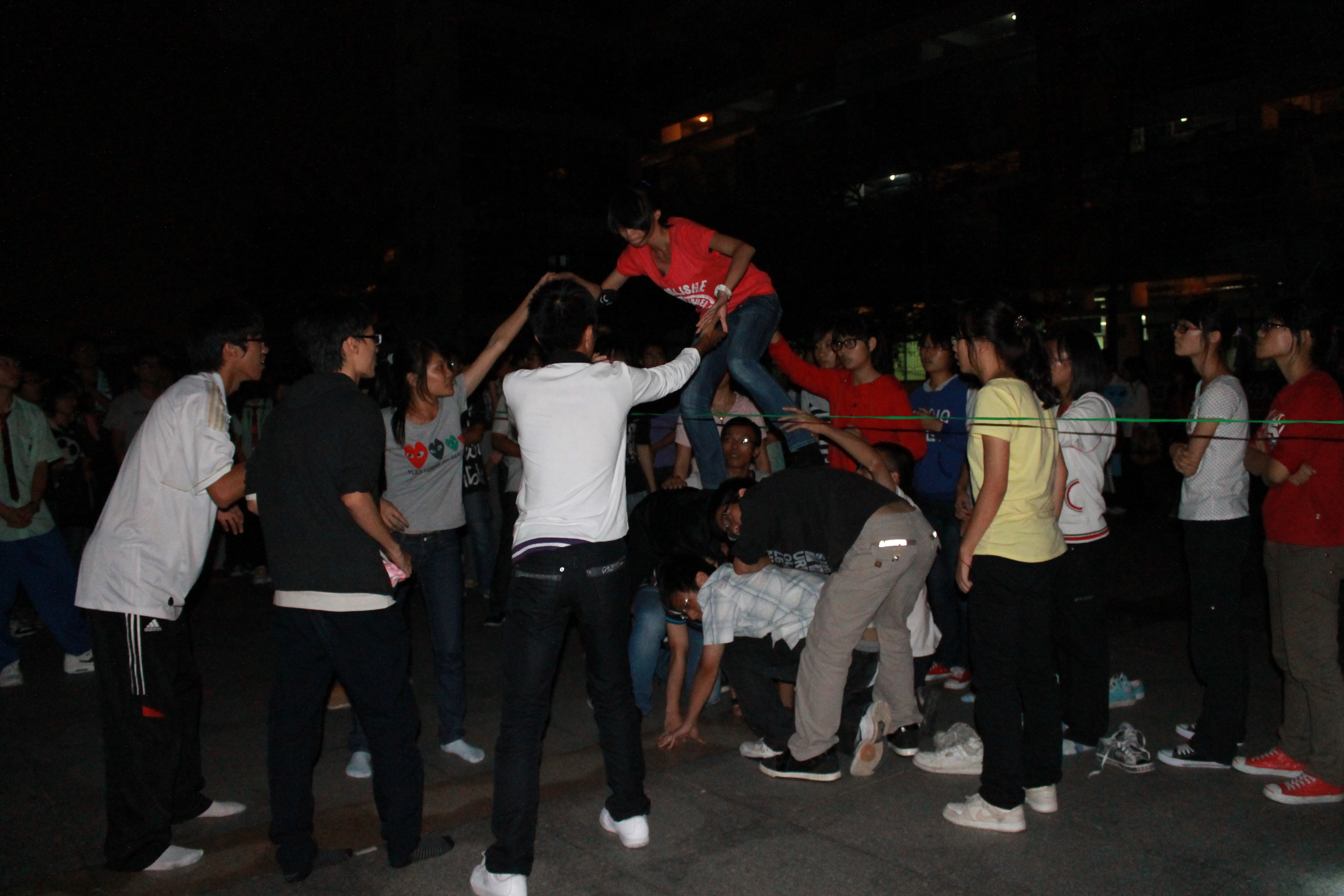 15日晚上6点,在教四举行以“成长·感恩·分享”为主题的户内户外拓展培训。户内培训分组进行,紧张刺激的游戏,严峻的惩罚,让新干事们在游戏中增强责任意识和团队精神。穿越各种障碍后,开始进行了户外培训。户外以分组游戏的形式进行,投篮高手、战俘、云梯等游戏考验着每个团队,各个小组成员们互相合作,相互信任,完成每个艰巨的任务。在拓展培训中,各位学员们学会了如何团队协作,互相信任,齐心协力战胜困难,达到了很好的培训效果。