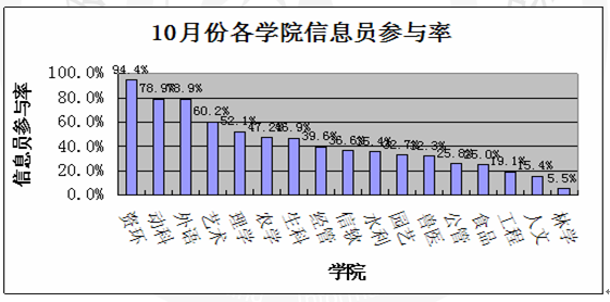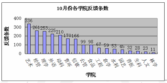 校学生教学信息委员调研部对本学院2011年10月份各班级信息反馈情况作出统计总结,希望能为本学院以后工作重点提供参考。