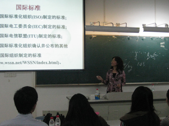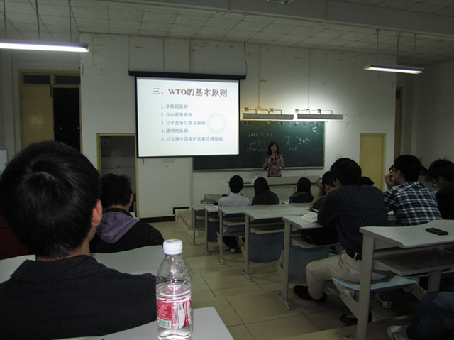 李斌老师分别从何谓WTO、WTO基本职能、WTO基本原则、WTO/TBT、WTO与中国等五个方面进行讲述。从李斌老师的讲述中,大家知道了WTO成立于1995年1月1日,中国于2001月12月11日正式加入该组织,也明白了WTO有非歧视原则、自由贸易原则、透明度原则等基本原则,同时还清楚了我国参与国际标准制定的情况、中国加入WTO的大致过程和中国未来的任务。李斌老师凭借独特的个人魅力,运用她一贯的演讲风格,让整个讲座充满轻松和激情的氛围,令所有听众陶醉其中,掌声连连。