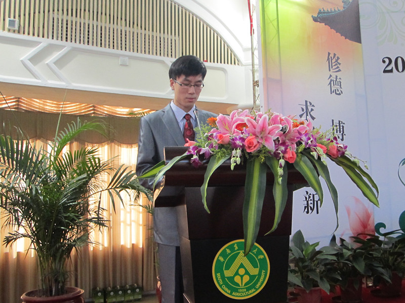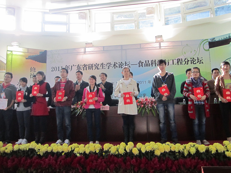 在华南农业大学副校长吴鸿致欢迎辞后,广东省学位委员会办公室副处长王丽萍女士对本次院究生论坛的召开表示肯定,并对广东省的广大研究生提出更殷切的期盼。华南农业大学食品学院研究生会主席臧帅作为学生代表进行了发言。随后,华南农业大学研究生处领导宣布本次论坛的优秀论文获奖名单,并进行颁奖。颁奖结束后,各参会代表在华南农业大学旧图书馆前合影留念。