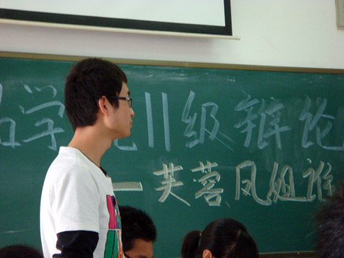 正方是食品质量与工程3班和4班组成的队伍,认为芙蓉姐姐更适合做老婆;反方由食品质量与安全4班和生物工程2班组成,支持凤姐更适合做老婆。随着辩论赛主席吴欣欣宣布辩论赛开始,双方一辩开始立论陈词,一场没有硝烟的战争就此拉开了帷幕。