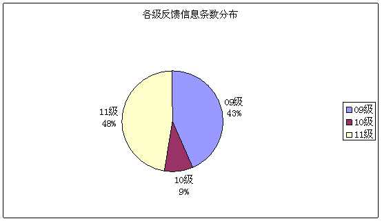09级各班的反馈条数相差较大,部分信息员反馈意识不高,但部分信息员对信息反馈工作积极。