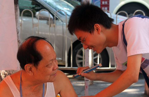 食品红会的同学为老爷爷烧艾度穴