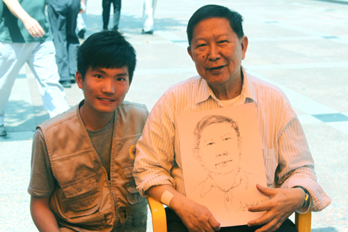 老爷爷与“画家”合影留念