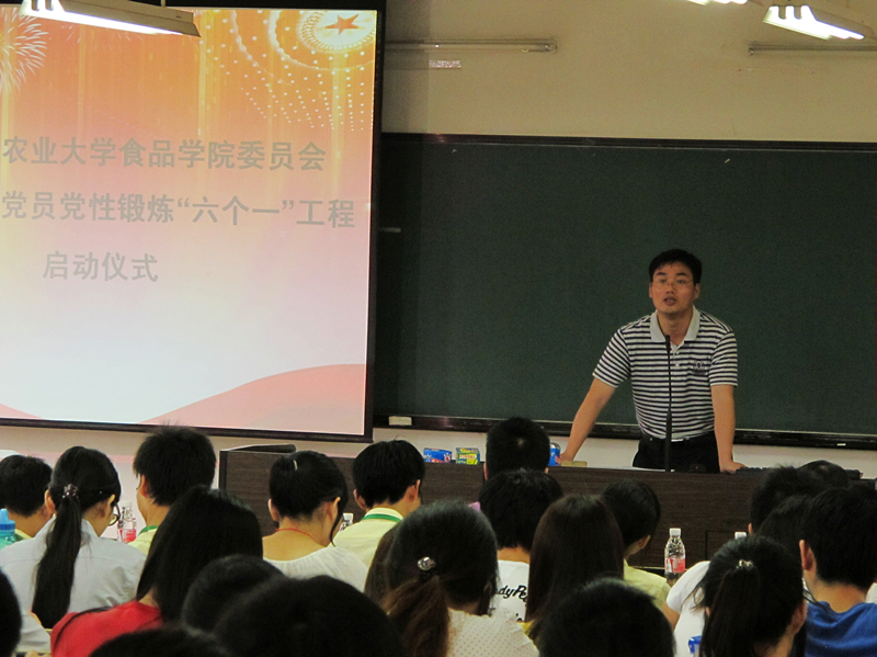 食品学院2010级林志鹏代表全院学生预备党员上台发言:"始终遵循‘想做事,做好事,做成事’的人生态度,用点滴行动诠释共产党员对事业的追求”。启动仪式最后,学院全体预备党员郑重签署了《预备党员加强党性锻炼公开承诺书》,以表自觉提升党性修养,接受监督的决心。
