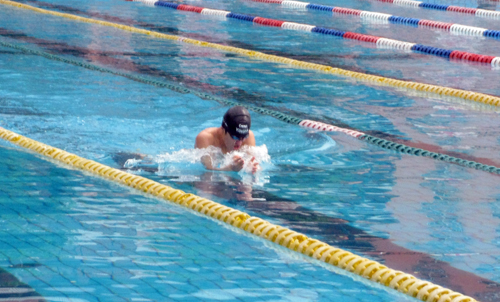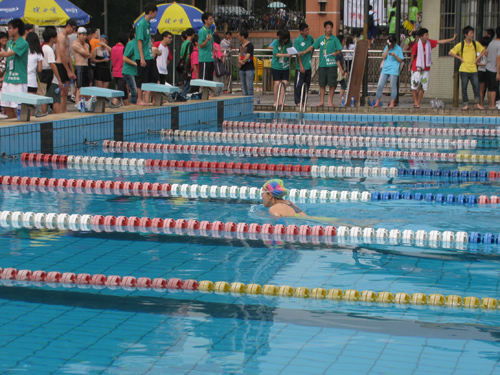 虽然天气并不理想,但却丝毫影响不了健儿们的激情。枪声一响,水运会正式开始,第一个项目是蛙泳,体育健儿们在游泳池中尽情地赛出自己的风采。在蛙泳中最激动人心的场面是,姚宗阳同学慢了其他运动员半拍情况下,凭着熟练的技术,纵身一跃进水池,就超过了其他运动员,速度像飞鱼样勇往直前,在最后一圈,遥遥领先他们。他不负众望,最后1分20秒93毫秒优异的成绩破了纪录获得冠军,全场欢呼声不断。观众表示:“比赛很精彩,如果有机会明年会参加。”