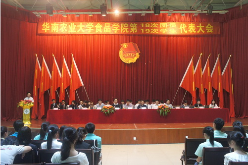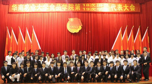 5月20日下午,食品学院在新学活隆重召开第十八次团员、第十九次学生代表大会。食品学院党委书记李国章、院长孙远明教授、校团委副书记陈建、食品学院党委副书记苏镇松、副院长向红教授、全体辅导员及468名学生代表参加了本次大会,华南理工大学轻工与食品学院、广东工业大学轻工化工学院等兄弟院校的学生代表应邀参加了本次大会。大会由食品学院辅导员左浪主持。