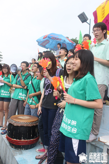 此次比赛中,我院啦啦队的阵营比往年强大。在比赛中,无论选手处于领先,还是落后,啦啦队都会敲响大鼓为运动员鼓劲加油。