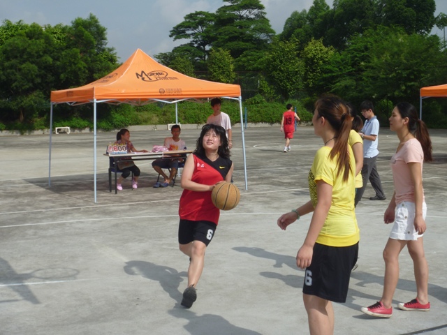上午9:00女子组篮球赛开始,双方在愉快的气氛下进行,虽说是女子比赛,但是“三步上篮”、远投等应有尽有,真可谓“巾帼不让须眉”。比赛进行10min,最后总比分16:14,研一研二队胜。