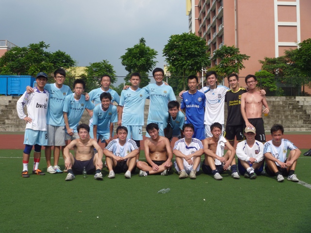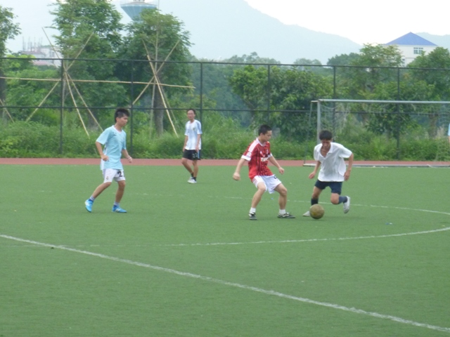 下午13:00食品学院与资环学院十一人制的足球赛正式开始,虽然烈日当头,但是双方都很珍惜这次比赛,队员的比赛激情不减。上半场比赛进行到15min时臧帅晃过对方后卫,起脚射门,“球进了”,食品学院首先进球。下半场时资环学院开始了反攻,连续通过长传、快速反击进球得分,食品学院也不甘示弱,通过发底线角球直接破门得分。最后以总比分3:5,资环学院胜结束比赛。