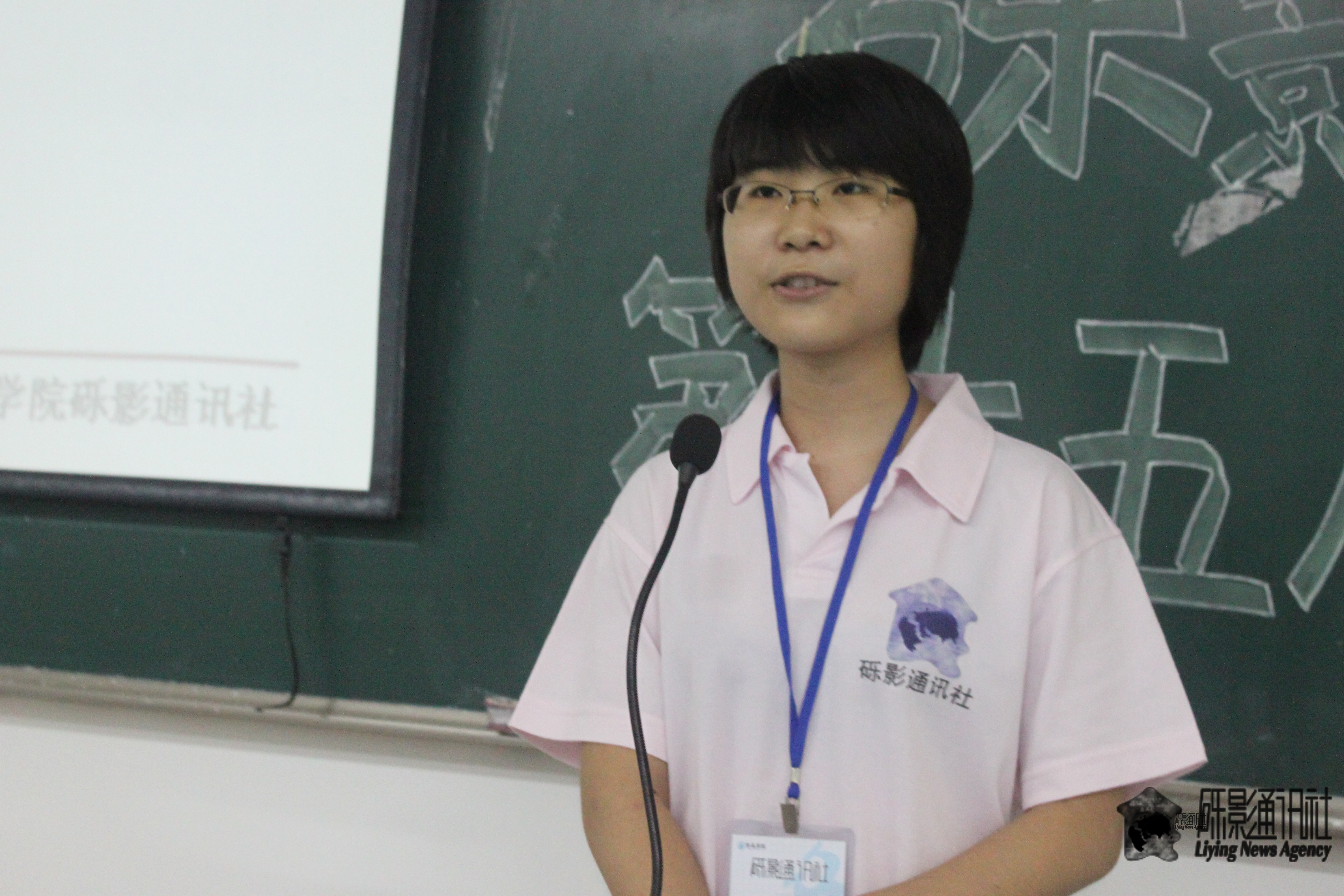 前任社长周妙霞主要从三个方面作了年度工作总结:工作项目、发挥特色,推进人文建设及统筹管理学院新闻工作,并就社团工作指出了一些问题,如新闻管理多障碍、宣传力度不足、双向反馈不到位、业务水平不高等,希望下一年能有所改进与提高。