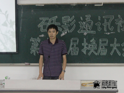 新任社长张啸龙做了工作计划,安排了新的任务,主要是下一届的迎新工作、招新工作、新闻工作会议、微博管理、拉赞助等。社长张啸龙讲到:“要有效地利用微博这一具有时效性的工具。因为它能有效地为我们做宣传。”