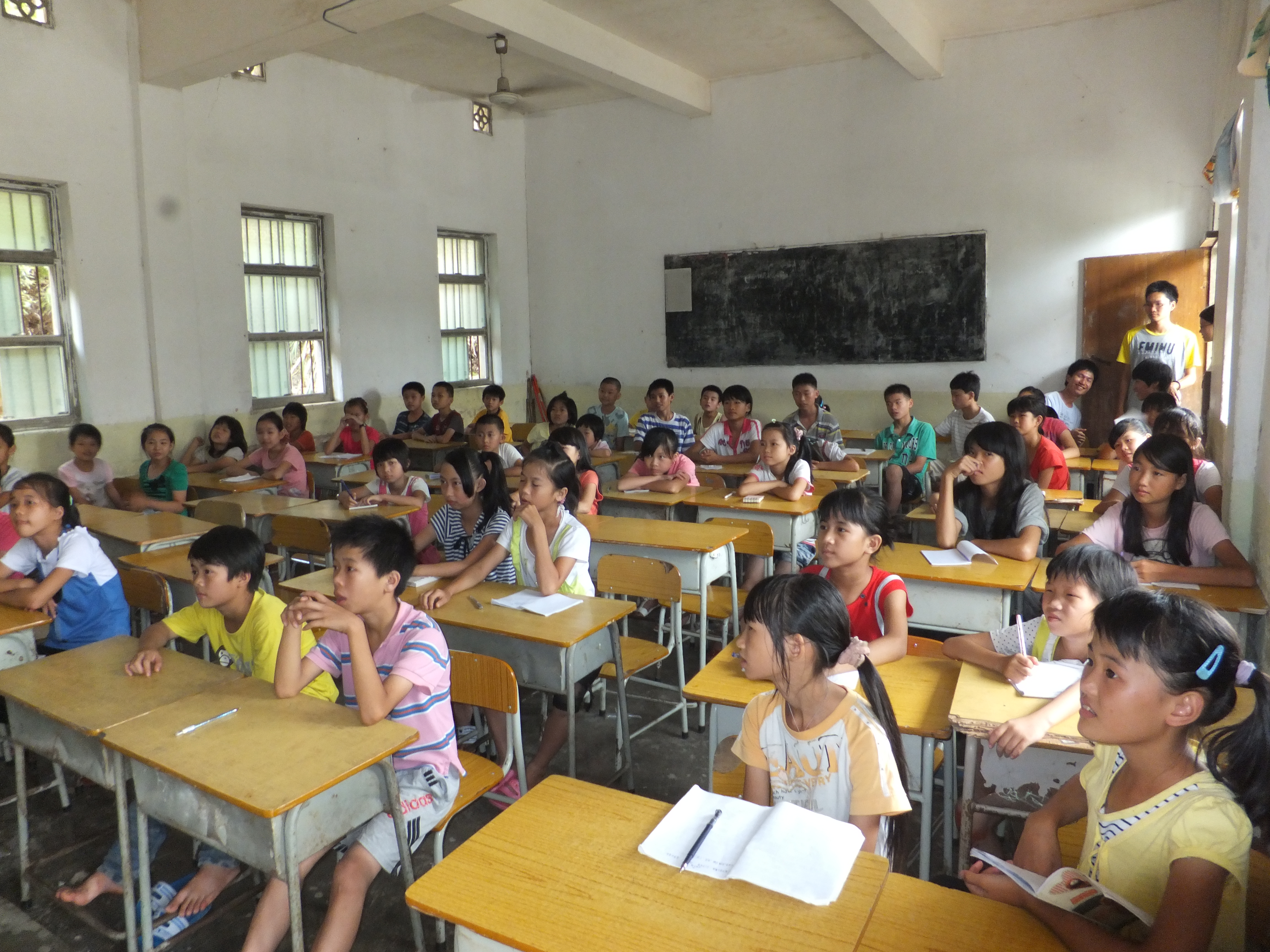 调研的同时,支教活动也有序进行着。据悉,今天的课程主要有趣味英语、异国风情、世界伟人趣事。支教队员反应,课堂秩序良好。