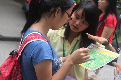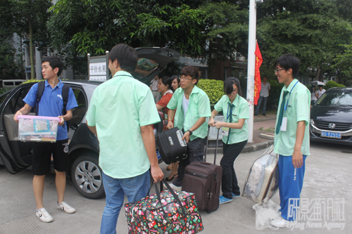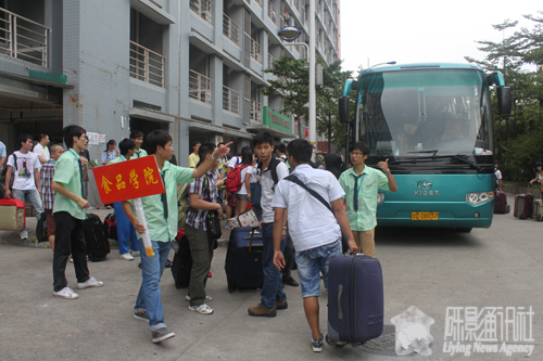 阴霾的天气,可挡不住等候在启林区食品服务团队高涨的热情。荷园车站处,我院的工作人员举着食品学院的牌子,大喊着:“食品学院的在这边!”校巴一到,马上就会有工作人员上去迎接。还有无处不在的阳光员,他们帮新生搬运行李,介绍宿舍区的基本情况,忙得不可开交。服务团队的表现得到了新生家长们连声称赞。