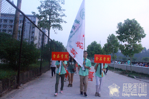 在路灯刚熄灭后,在助班以及阳光员的带领下,我院新生陆陆续续在跃进南操场集中,6:30,准时向东区出发。一路上,同学们在打闹着,相处得非常融洽。新生讲到:“我今天很早就起床了,现在还很困,但是参加开学典礼就意味着我正式成为华南农业大学的学生,开始我的大学生活,所以还是很开心的。”