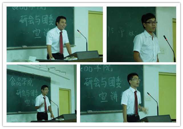 首先,研究生团委副书记孔令君、研究生学生会主席张全凯对研究生团委、学生会的工作性质、主要活动等情况进行了简短的介绍。随后,各部门部长对各自部门的职责、工作意义、负责的主要活动进行宣讲,并鼓励2012级研究生积极加入研会这个大家庭。各部部长用各自的风格进行宣讲着,有幽默风趣、有的激情似火.......新生也被师兄师姐的演讲深深的吸引住了,被师兄师姐幽默的语言引发的笑声也是此起彼伏,一波接一波,整个活动在活跃欢快的氛围下进行着。