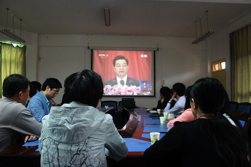 为方便师生观看党的十八大开幕式,食品学院党委组织学院教职工和学生干部代表在食品学院301观看党的十八大开幕式。