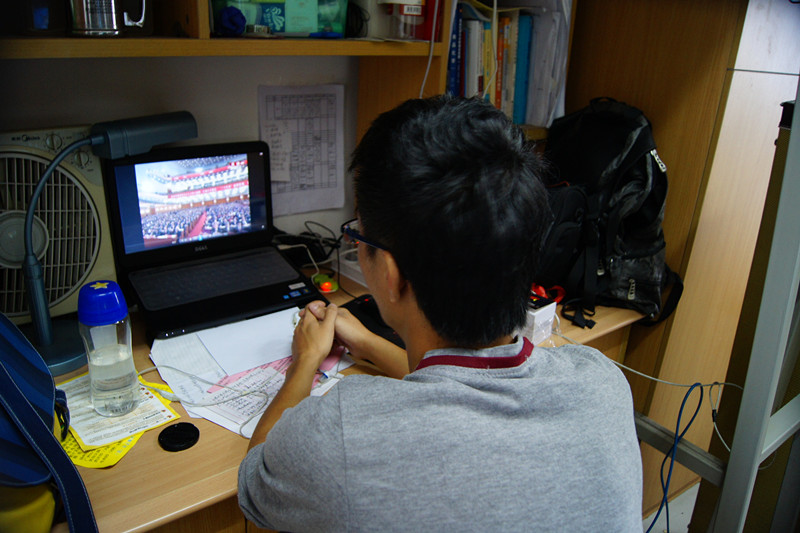 记者在走访中发现,有不少学生选择在宿舍通过网络直播收看党的十八大开幕式直播。