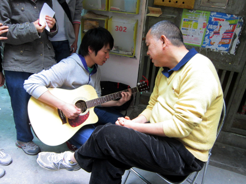 每次探访工友,志愿者们都准备了丰富的节目,如《让世界充满爱》、《隐形的翅膀》、《明天会更好》等歌曲演唱、手语、吉他弹唱、“盲人贴鼻”、“地鼠洞投球”等操作简单而又极具趣味性的游戏。此外,陪伴工友做手工也是志愿者的工作之一,过程中,志愿者们会以聊天的形式了解工友们的所需。大部分数工友表现积极乐观,愿意和志愿者们进行交流,华乐街工疗站的工友阿英说道:“平时哥哥姐姐没来的时候我们都比较无聊,我最喜欢和他们一起唱歌,好热闹好开心。”