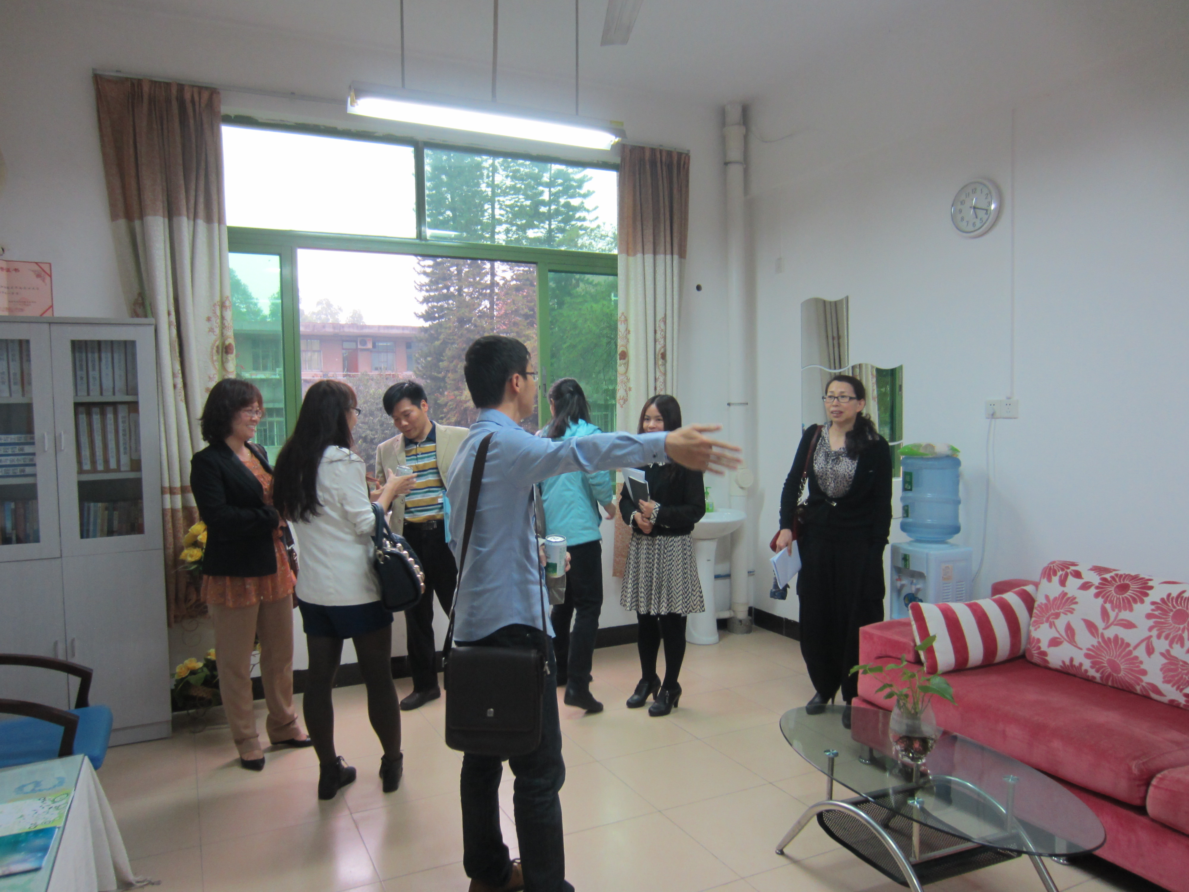 蔡处长对食品学院的心理工作给予高度评价,他认为,食品学院阳光加油站定位清晰、工作规范、组织温馨、文化深厚、心理工作在经验积累和文化传承的基础上不断坚持有新的发展和思路,特别对食品学院心理知识普及的平台“一坊一营”两大品牌项目给予高度赞赏。心理健康中心主任钟向阳就食品学院心理排查工作给予好的点评,同时,各学院心理辅导站指导老师在座谈会上也纷纷发表了自己的体会。现场气氛融洽,大家在讨论环节中互相交流,共同探讨,齐力推动心理健康工作。随后,蔡处长等一行前往食品学院阳光加油站办公室参观,食品学院心理评估工作圆满完成。
