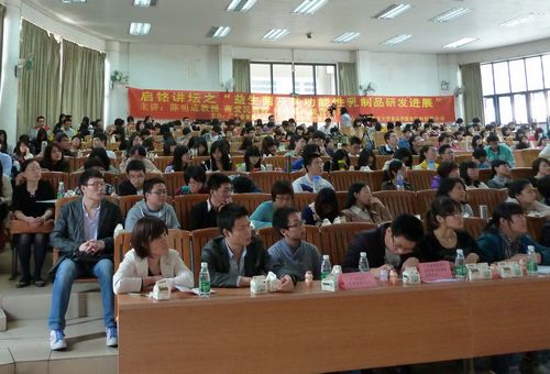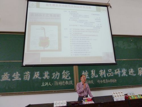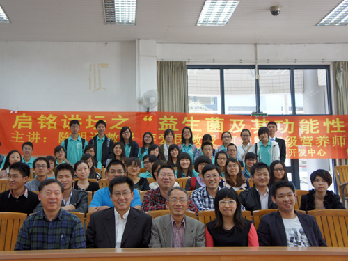 陈明造教授着重介绍了益生菌的保健功效,如增加食品营养质量、促进维生素合成等。而他个人亦针对不同族群特点设计了不同的产品,希望促进产品多元化发展。 本期启铭讲坛在第四教学楼107举行,由食品学院科技联合会举办。 据悉,食品学院启铭讲坛旨在给同学们一个了解最前端食品科技知识和学习先进食品理念的平台,开办几年来获得了同学们的众多好评。本次启铭讲坛得到了广东省畜禽产品加工工程技术研究开发中心和广东省食品学会益生菌与乳品专业委员会的大力支持,益力多、卡士、光明、燕塘、温氏乳业、香满楼、风行以及华农大食品科技有限公司等知名乳产品公司也都参与本次启铭讲坛的举办。(文/图 食品学院 左浪 食品科技联合会)